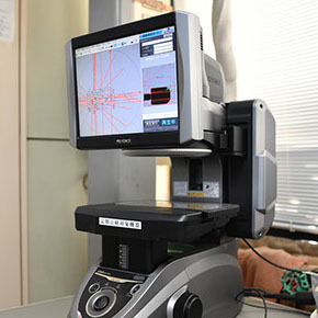 サンヨーは金属加工のプロフェッショナルとして「お客様に満足していただける製品」を日々お届けするために、継続した5S活動と確かなトレーサビリティを追及しております。製品の一つひとつを繰り返しチェックしながら安定した品質を維持するために、サンヨーではあらゆる角度から検証することのできる検査装置を取り揃えております。